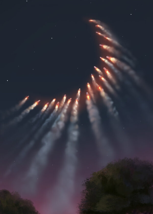 اع داریم موشک میزنیم. اللهاکبر اللهاکبر ماشاالله خوب دارن میزنن. از فلانشهر شروع کردیم داریم میزنیمشون.